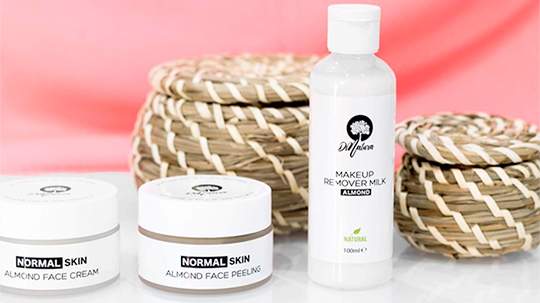 Badem kolekcija za sada sadrži tri proizvoda: već svima dobro poznato bademovo mlijeko za skidanje šminke, kao i dva potpuno nova proizvoda: kremu za lice namijenjenu normalnoj koži i kremasti piling za lice. Sva tri proizvoda imaju karakterističnu nježnu aromu badema i vanilije i bazirana su na ovom istinskom daru prirode. Krema za lice je obogaćena shea maslacem, dok piling za lice sadrži fino mljevene sjemenke maslina, koje nježno čiste lice.